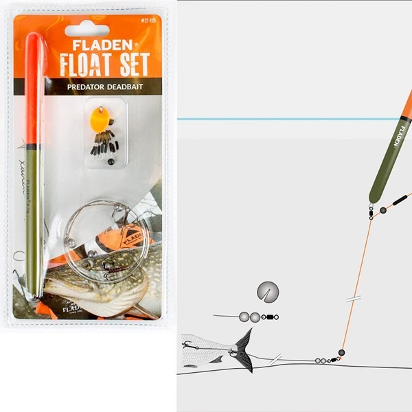 De Fladen Deadbait Float-set is een complete montageset voor doodaasvissen op de bodem.