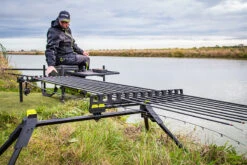 Hengels of hengeldelen gemakkelijk aan de kant leggen is nog nooit zo gemakkelijk geweest. Met deze Matrix Kit Roost leg je maar liefst 12 hengels of hengeldelen veilig en beschermd neer. Het zeskantig EVA foam zorgt ervoor dat je alles zonder te beschadigen neer kan leggen en kan pakken. Door de hoge opstaande randen zal er bij ruig weer nooit iets uit kunnen waaien. De dubbele telescopische poten zijn tot een maximale hoogte van 670mm uit te schuiven en dus stabiel neer te zetten op schuine hellingen. Eveneens compatibel met de Roller Leg Extensions en geleverd in een duurzame draagtas!