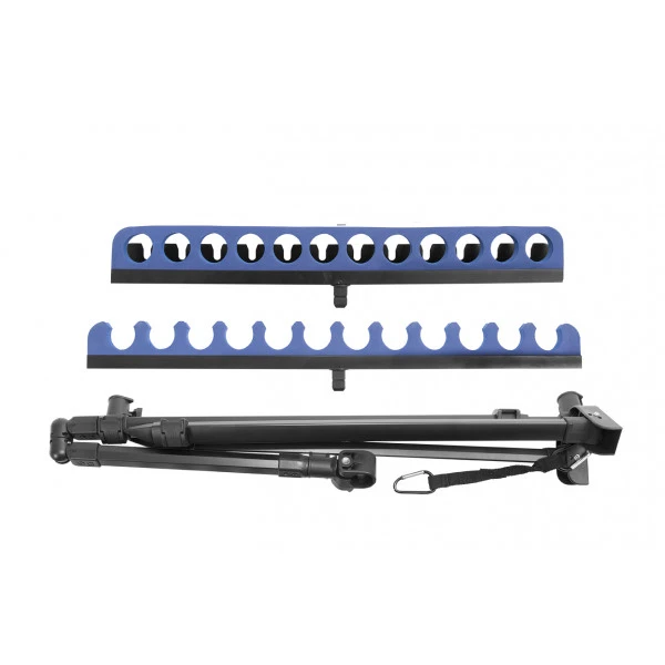 Dit is de ultieme topkitsteun die de visser een bijzonder veelzijdige en stabiele oplossing biedt voor het afleggen van topsets en hengels. Door de verstelbare en draaibare OffBox 36 Snaplok-arm kun je je topsets in elke gewenste positie afleggen in de buurt van je zitbox of zijplaat, waardoor je ze direct bij de hand hebt en geen last hebt van obstakels op de oever. De zachte EVA steunkop kan tot 12 topsets herbergen, terwijl je door de wijde inkepingen ook langere secties kunt afleggen. De kans dat je topsets door de wind van de steun worden geblazen, wordt geminimaliseerd door de omsluitende EVA achtersteun, die de kits veilig op hun plaats houdt. Deze achtersteun heeft tevens een stevige, Pulla Bung-vriendelijke achterplaat met inkepingen, waardoor je elke gewenste set kunt inzetten. Beide steunkoppen hebben geïntegreerde Snaplok Quick Release Inserts om de Deluxe Kitsafe compact te kunnen opbergen. De lengte en hoogte van de steun zijn instelbaar met behulp van de Quick Release Cams. Standaard is ook een verstelbare stabiliteitsband meegeleverd, waaraan een zwaar gewicht kan worden gemonteerd, zoals bijvoorbeeld een voeremmer. Dat geeft extra zekerheid in extreme weersomstandigheden. Standaard geleverd in een gevoerde draagtas en te combineren met pootprofielen tot een diameter van 36mm. Een topproduct van Preston voor de serieuze (wedstrijd)visser.